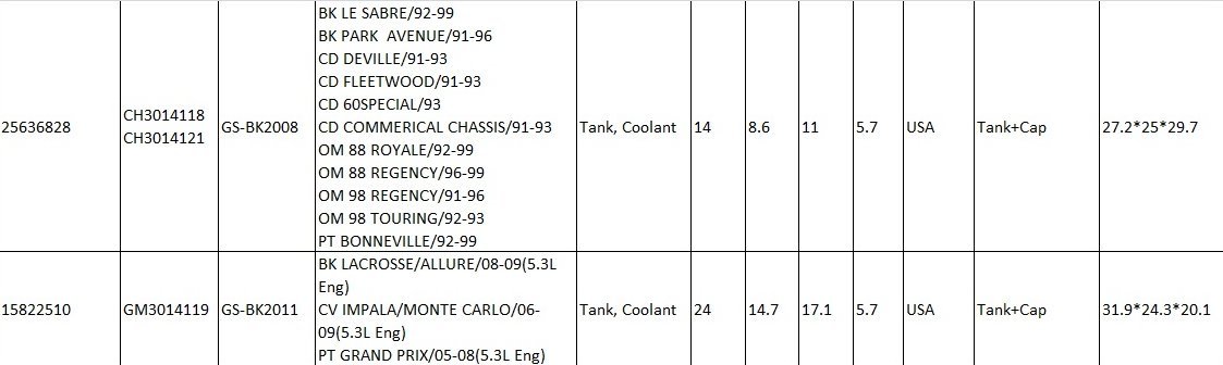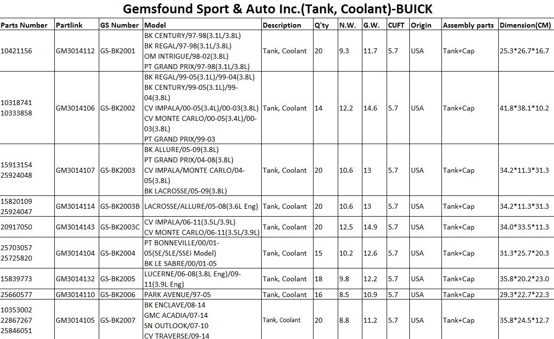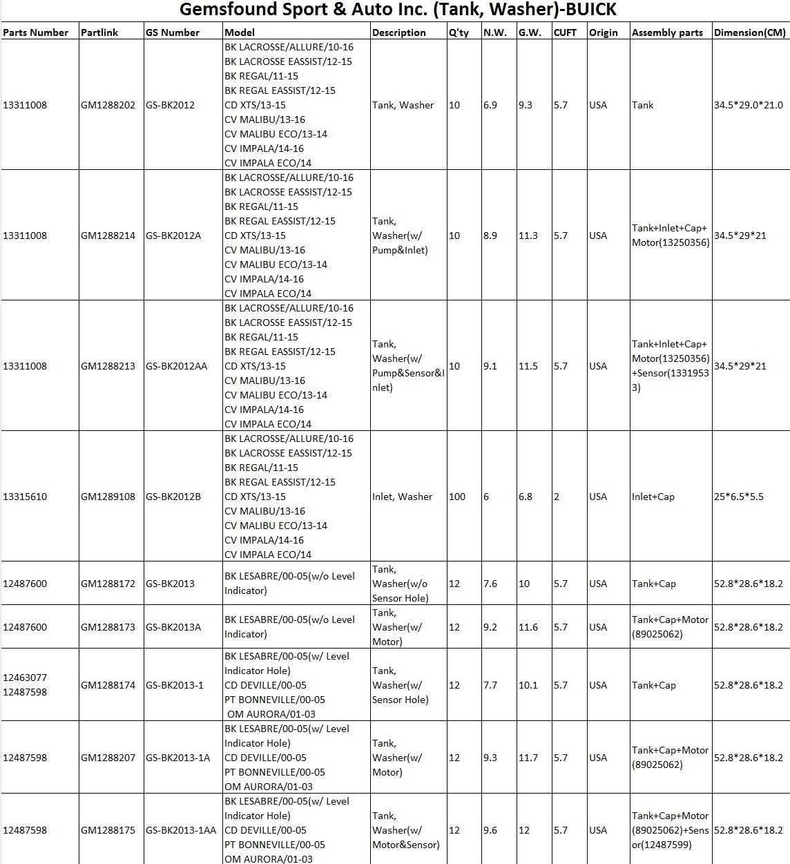 CODE :Show below PART NO. :Show below MODEL : Show below BRAND : Show below YEAR : Show below DESCRIOTION : WASHER / COOLANT TANK BUICK