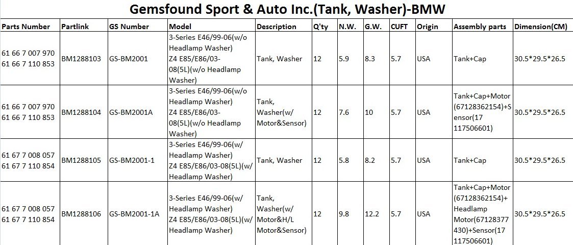 CODE :Show below PART NO. :Show below MODEL : Show below BRAND : Show below YEAR : Show below DESCRIOTION :WASHER TANK BMW