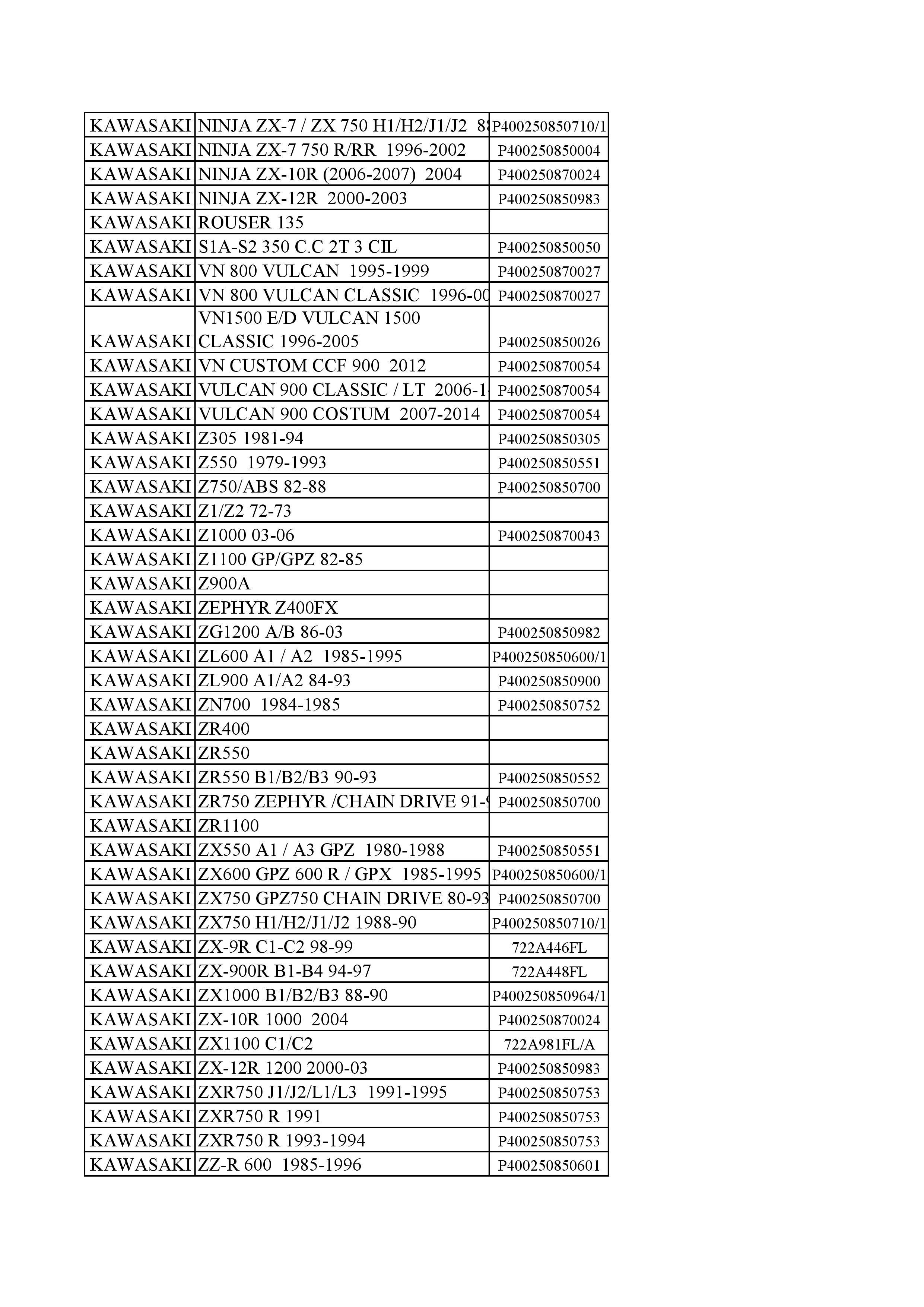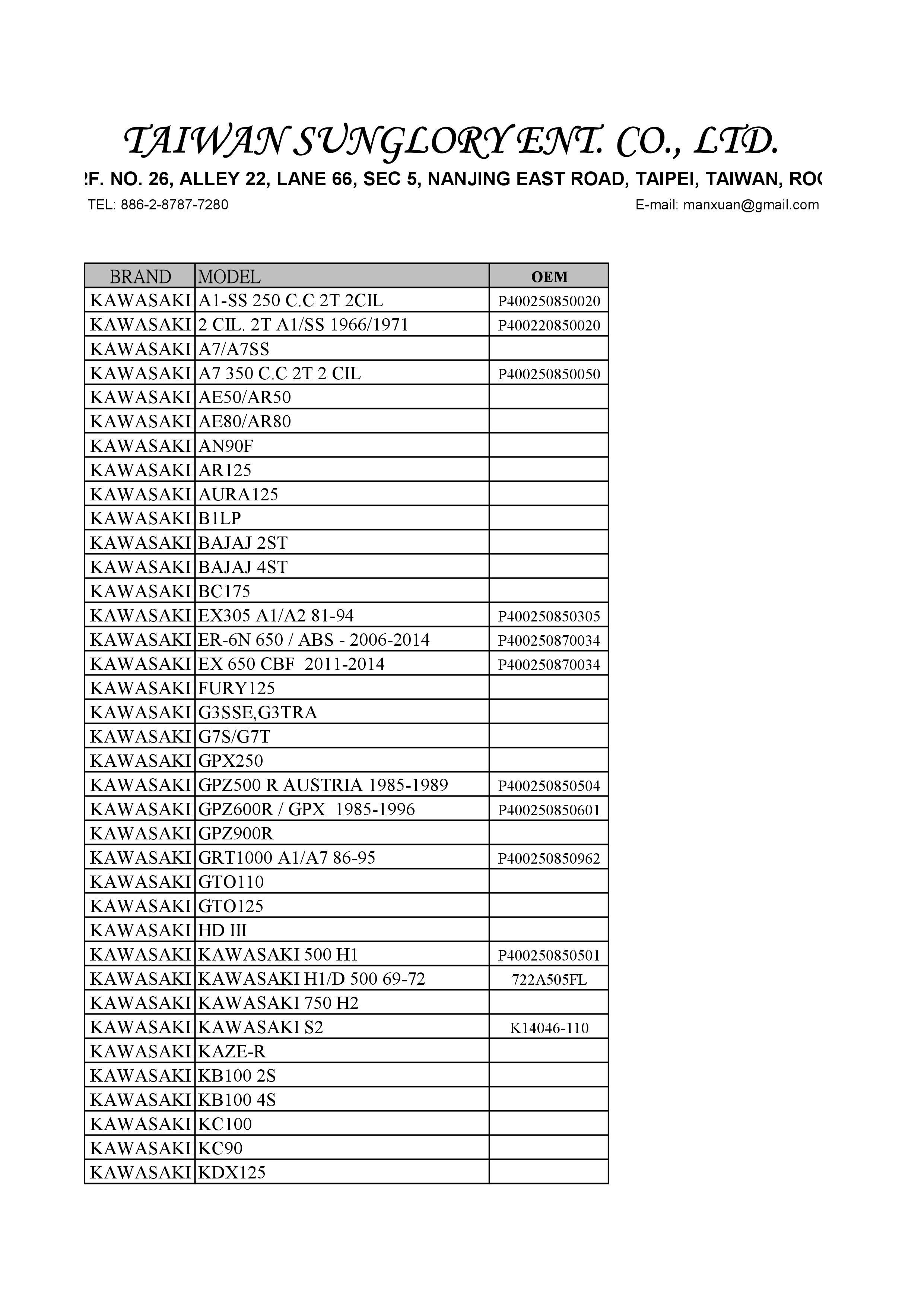 CODE :Show below PART NO. :Show below MODEL : Show below BRAND : Show below YEAR : Show below DESCRIOTION : KAWASAKI