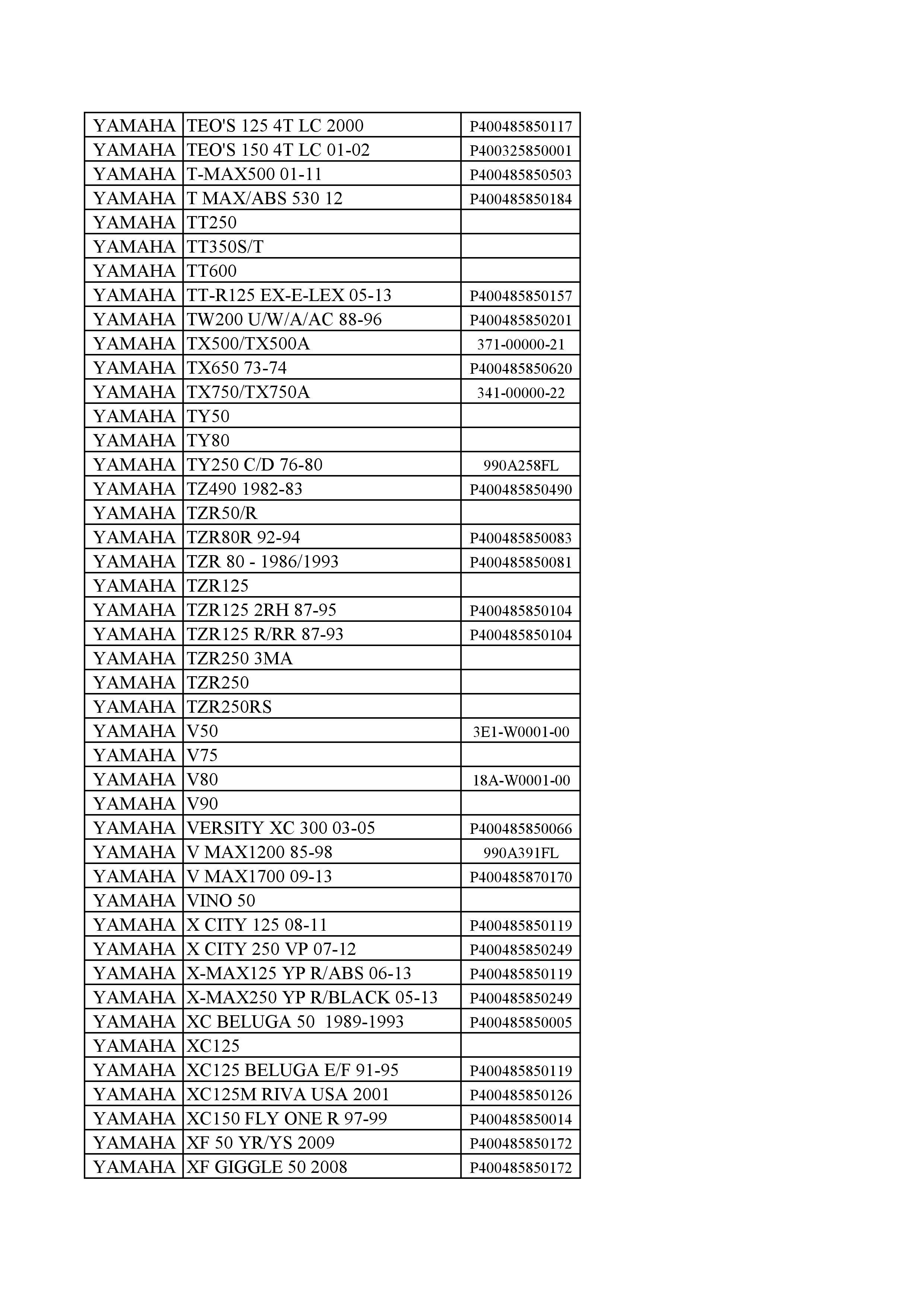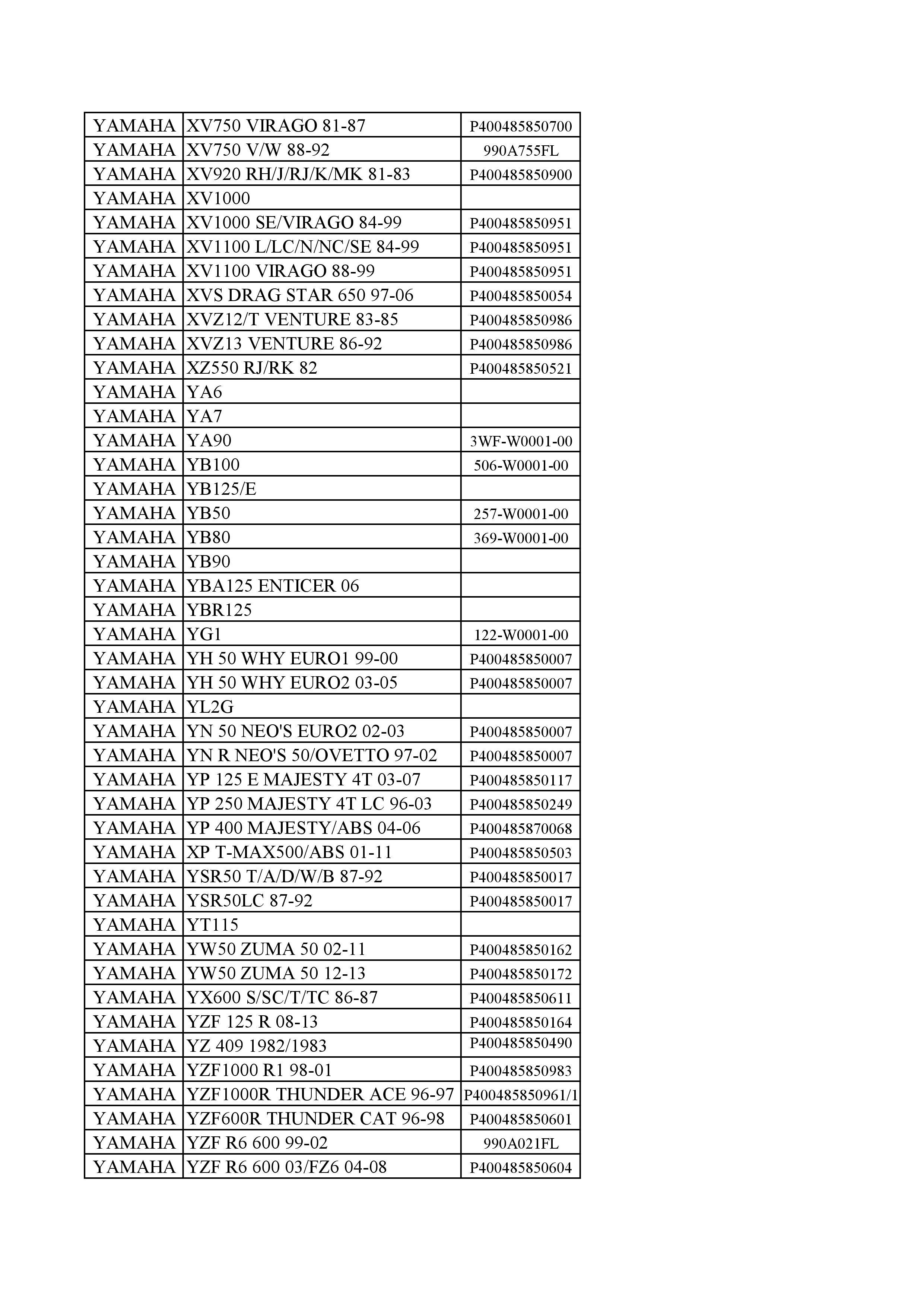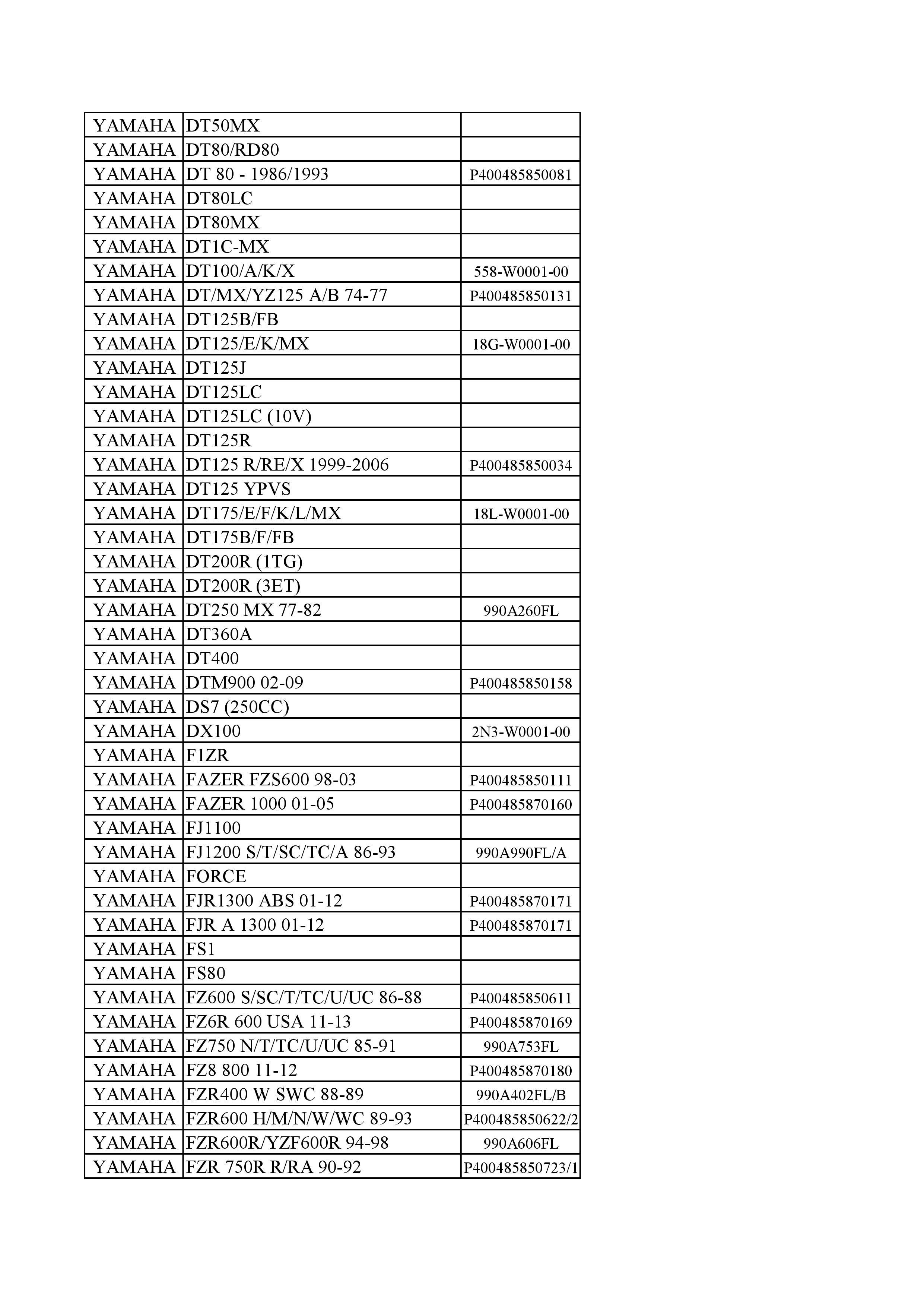 CODE :Show below PART NO. :Show below MODEL : Show below BRAND : Show below YEAR : Show below DESCRIOTION : YAMAHA
