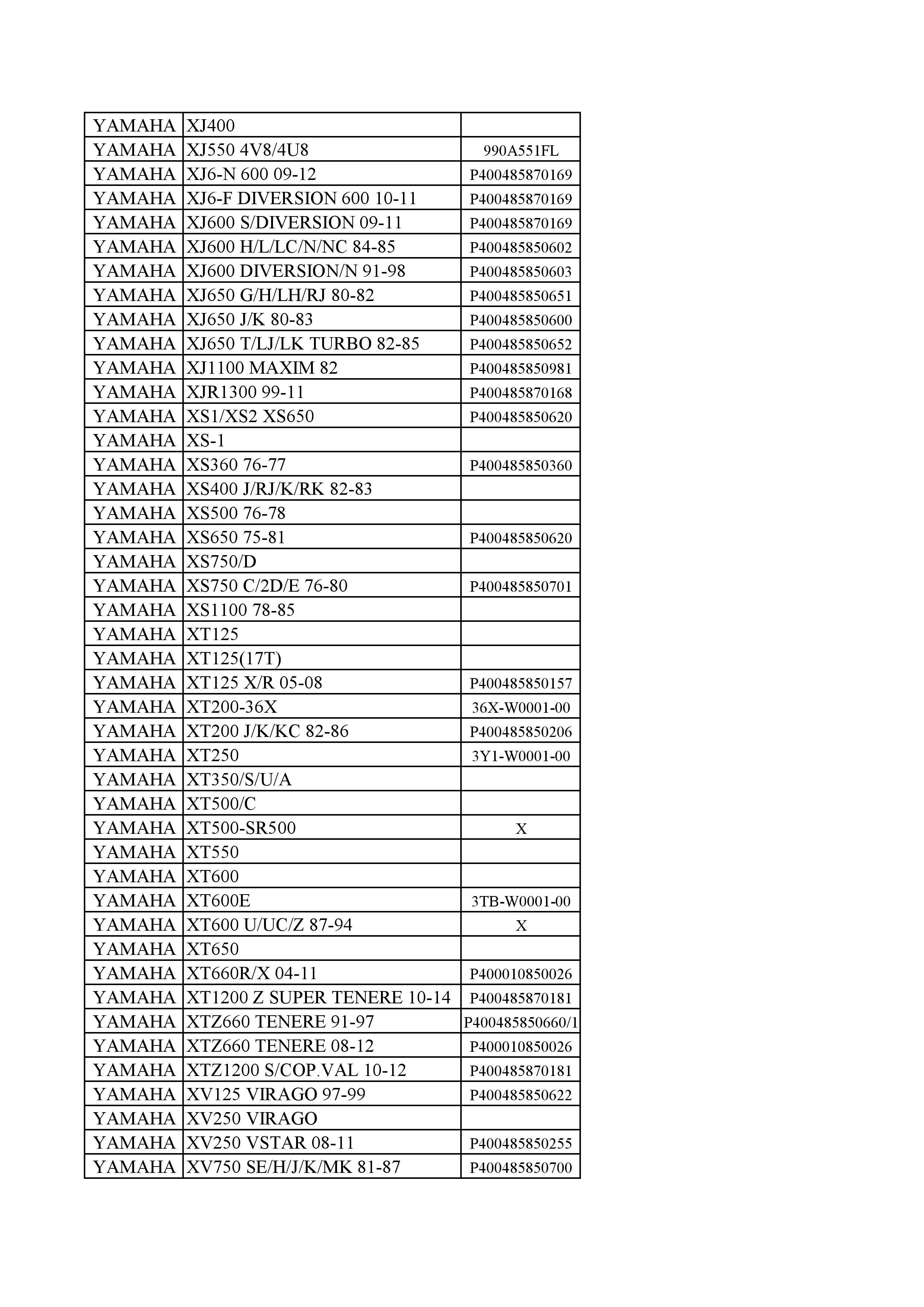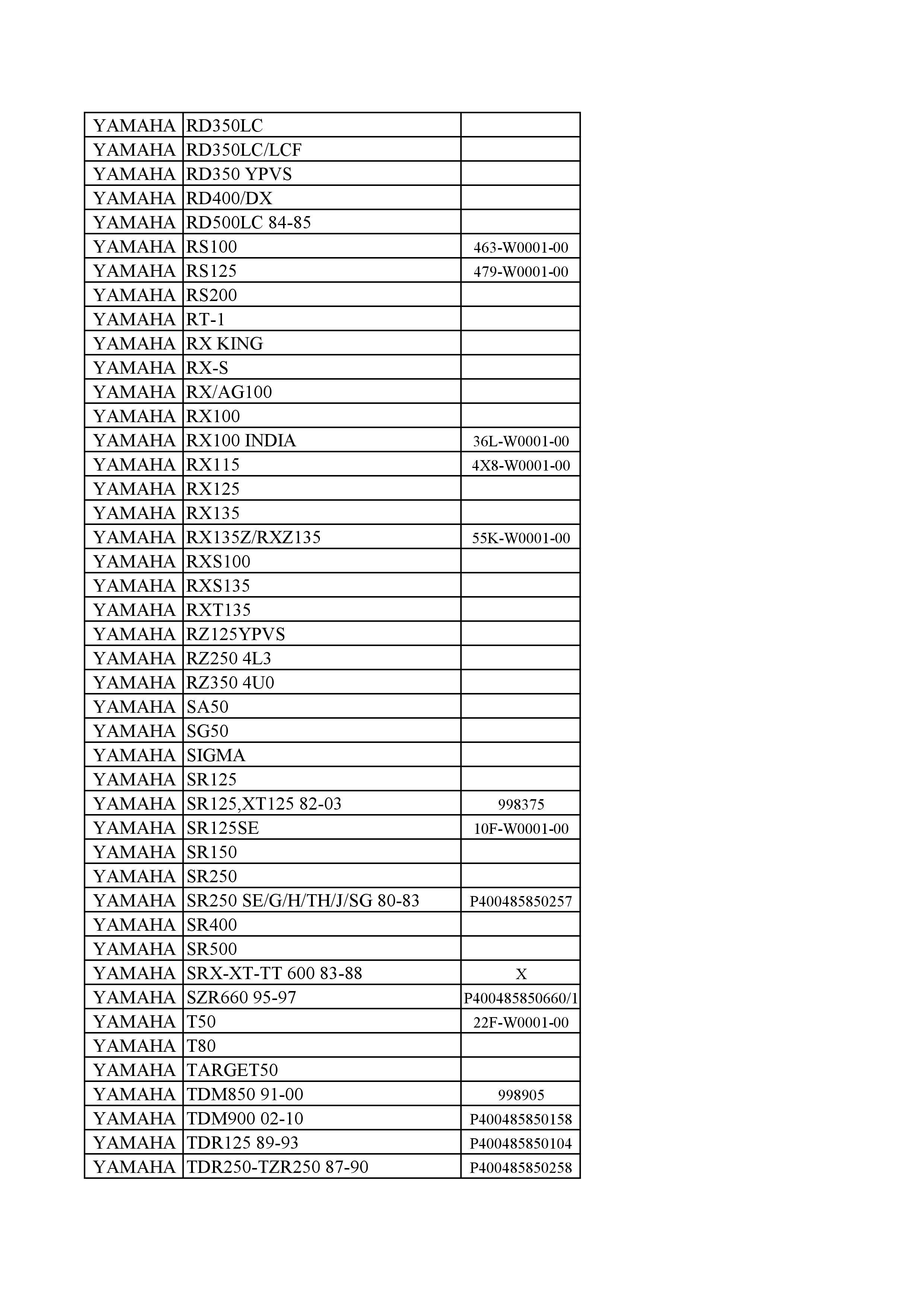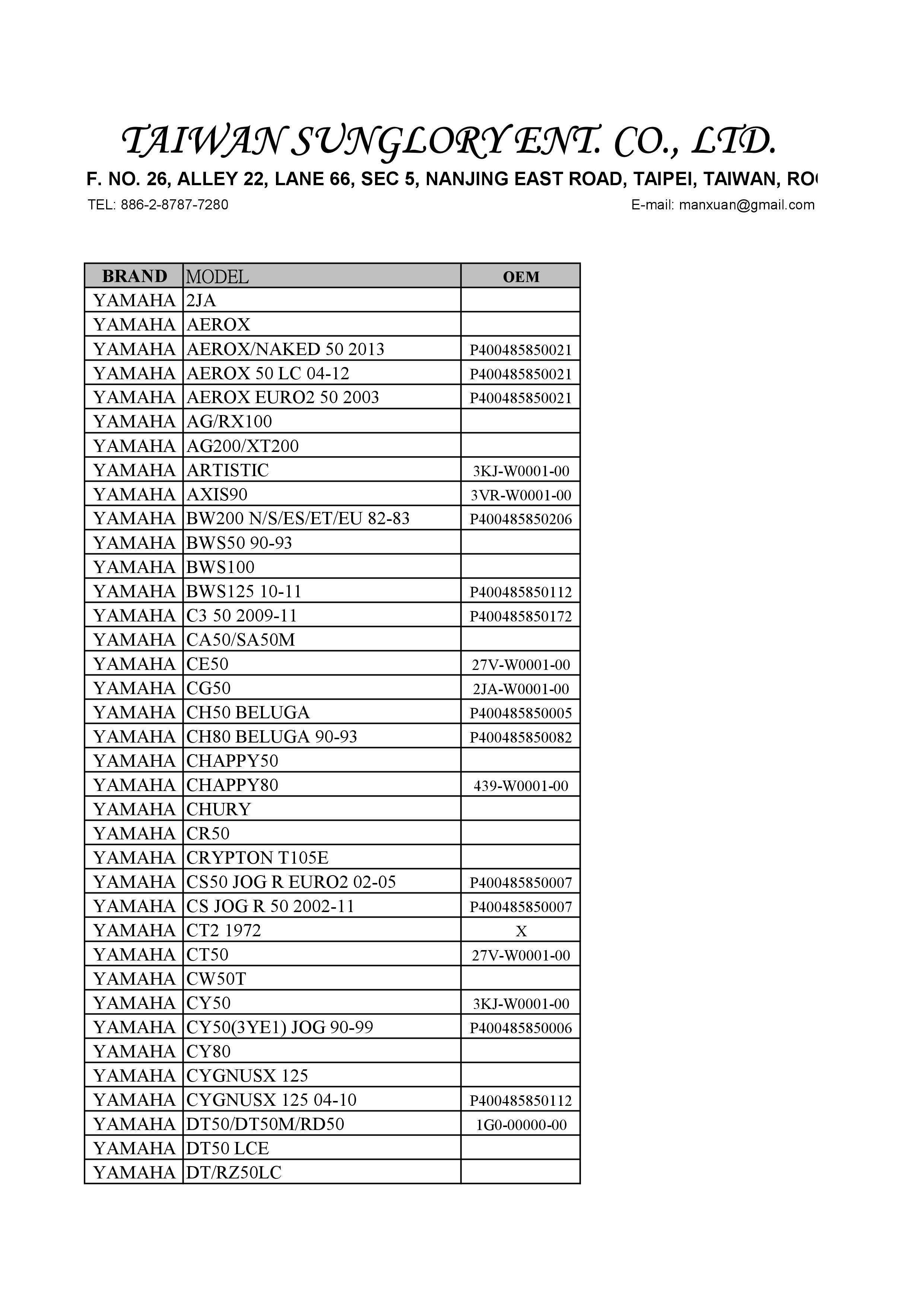 CODE :Show below PART NO. :Show below MODEL : Show below BRAND : Show below YEAR : Show below DESCRIOTION : YAMAHA
