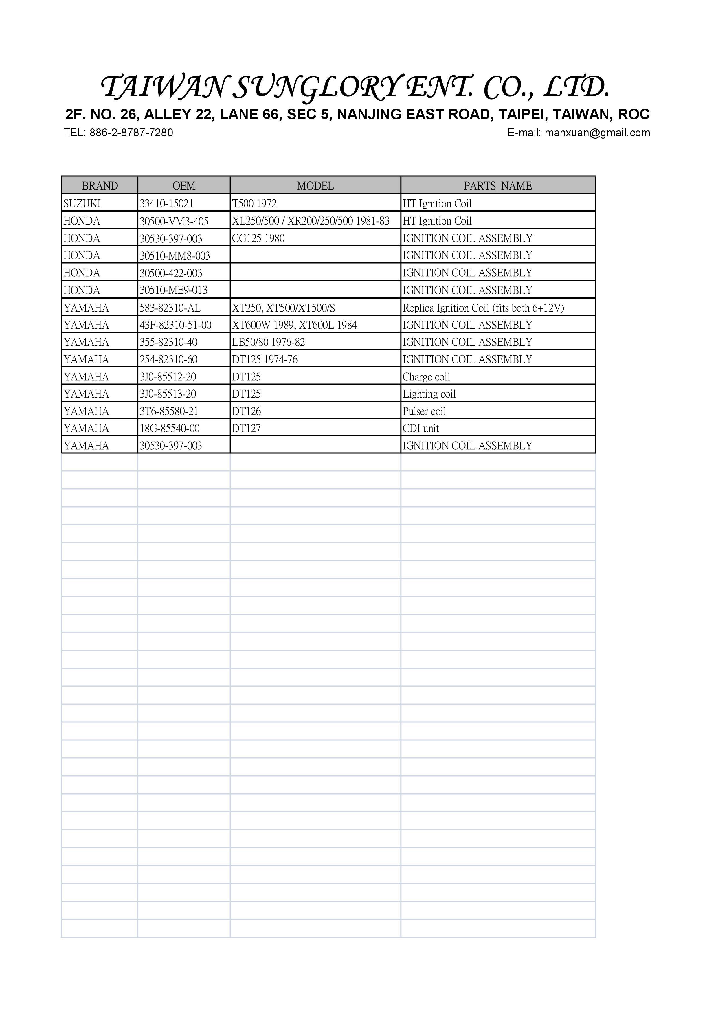 CODE :Show below PART NO. :Show below MODEL : Show below BRAND : Show below YEAR : Show below DESCRIOTION : IGNITION COIL